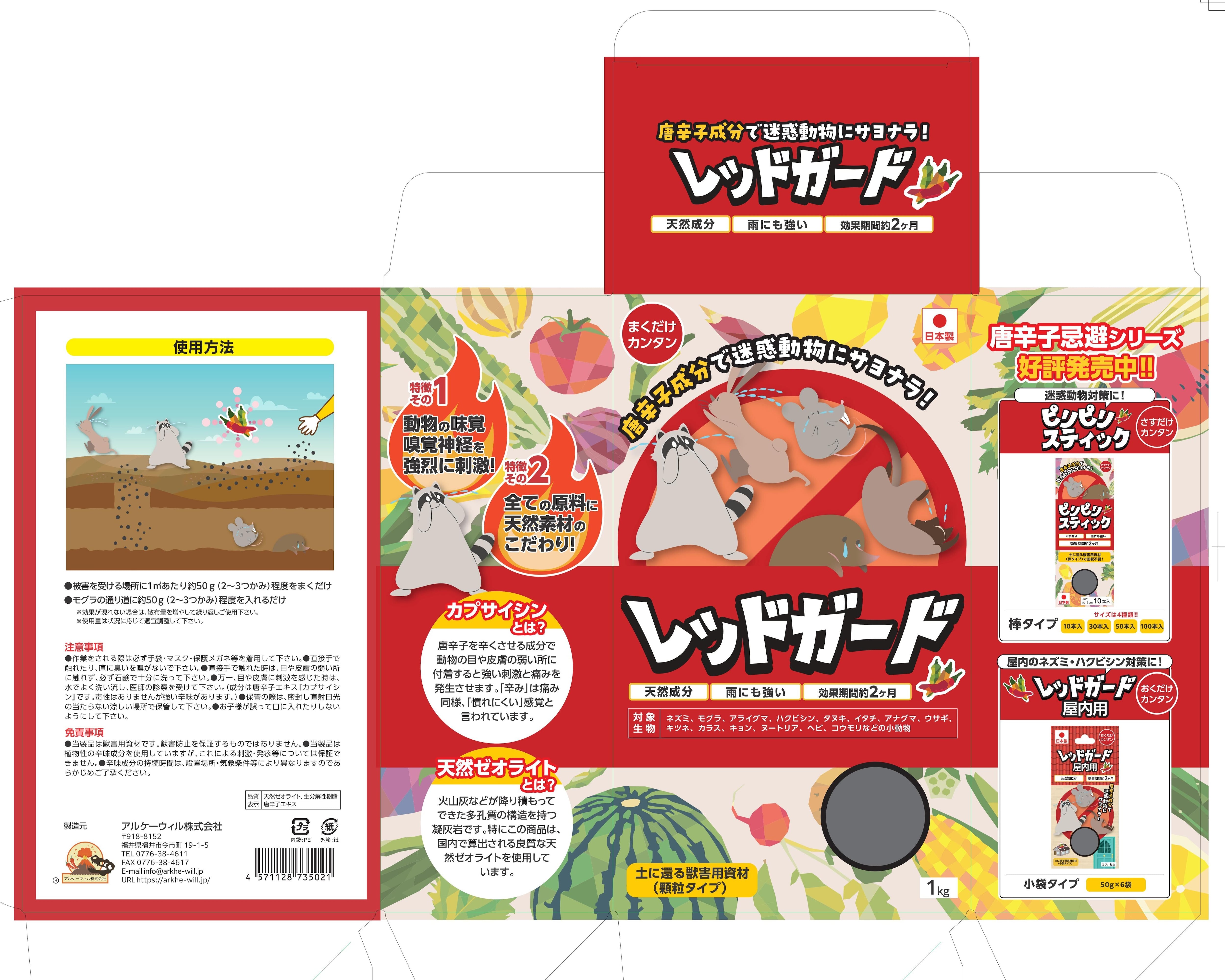 ・被害を受ける場所や迷惑動物の通り道に適量散布して下さい。
